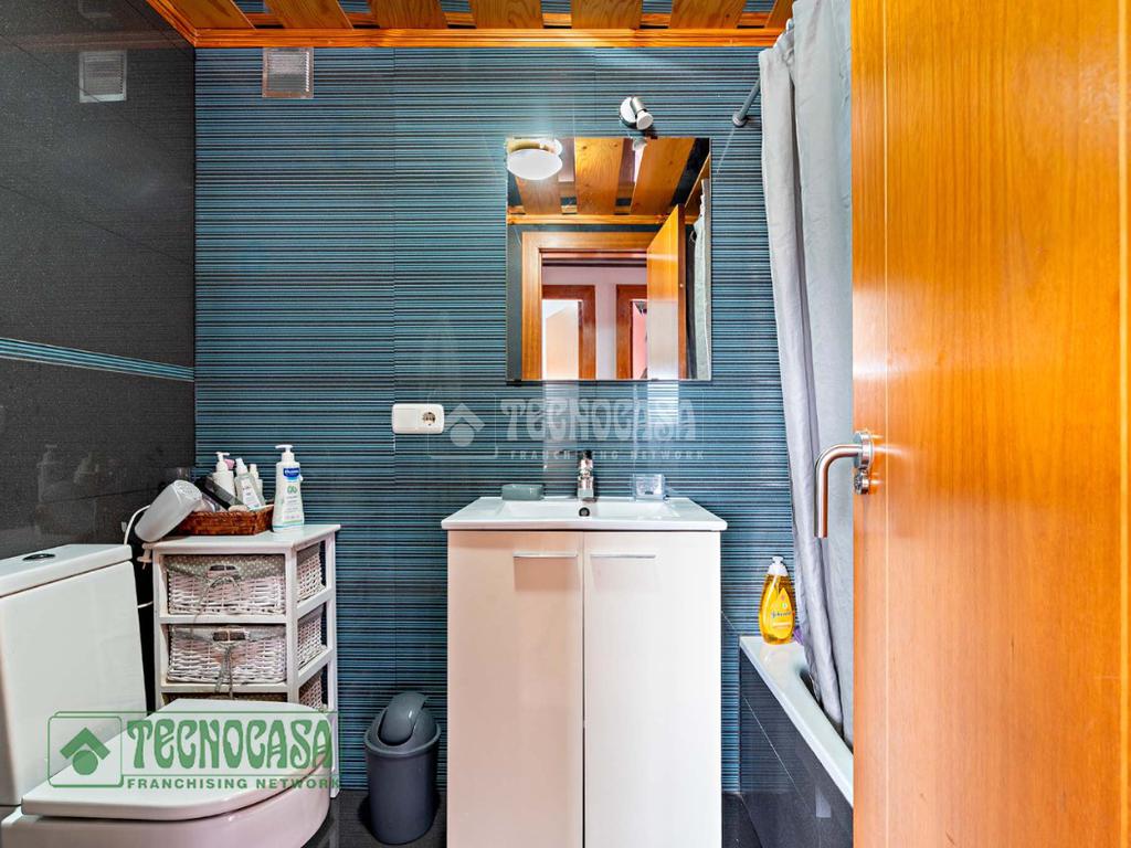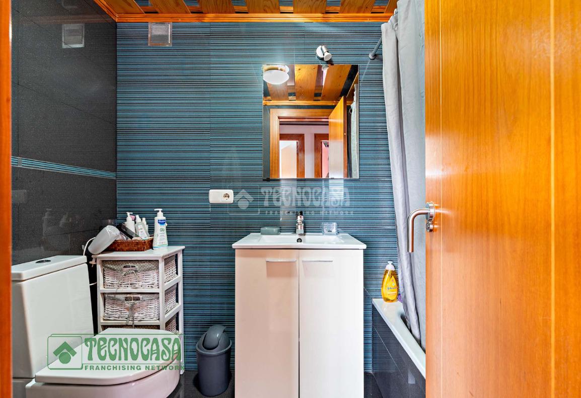 El inmueble cuenta con tres dormitorios, uno de ellos transformado en una encantadora sala de estar. El dormitorio principal es ideal para el descanso, mientras que el juvenil ofrece un espacio perfecto para los más jóvenes. Además, dispone de dos baños completos con bañera, garantizando comodidad para todos.